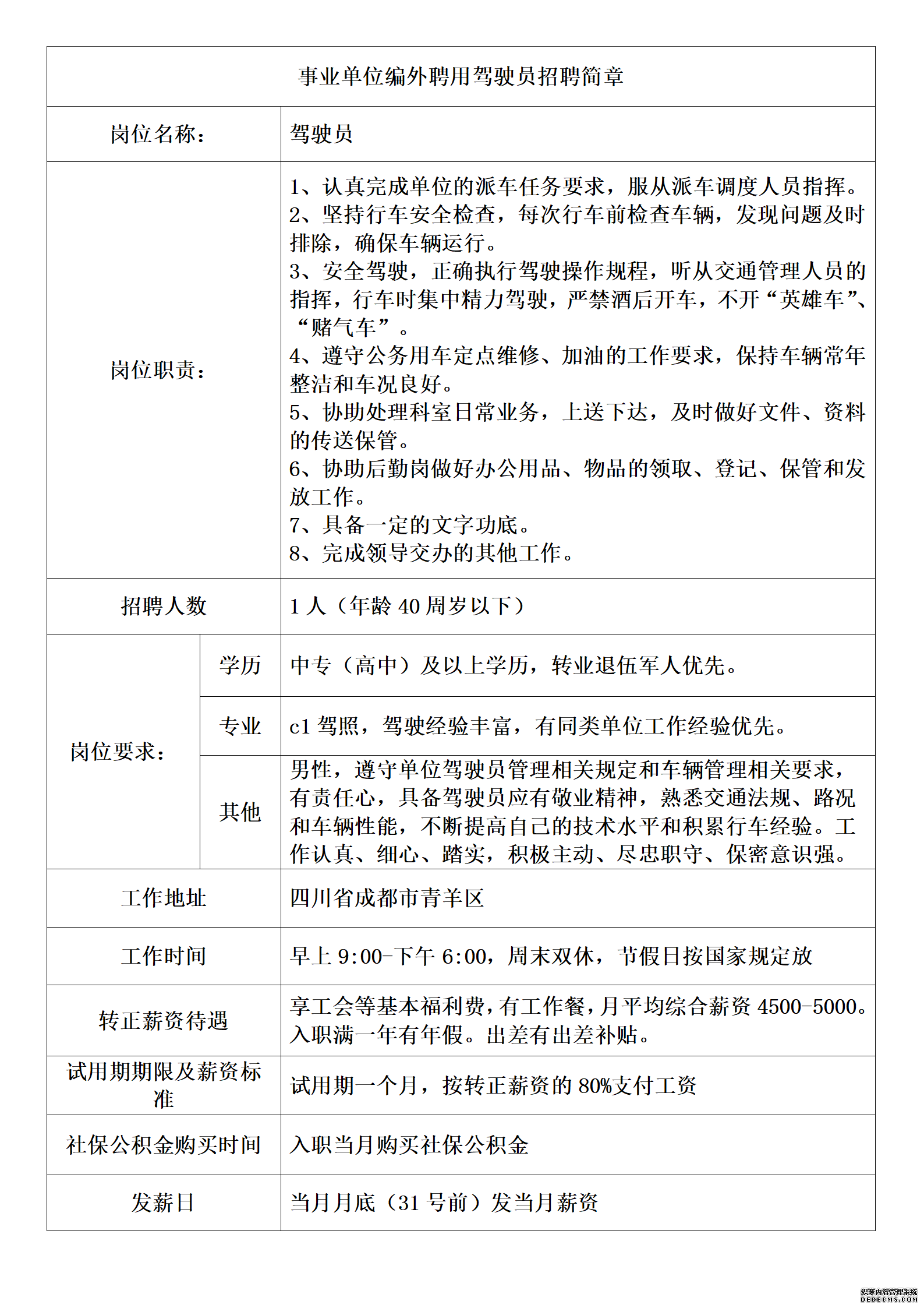 事业单位驾驶员岗位编外聘用招聘