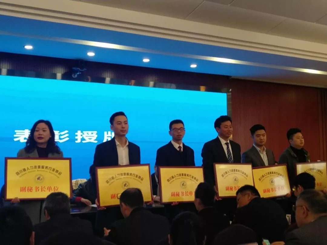 会上,四川省人力资源服务行业协会对16家机构进行了等级评定,同时表彰了2018年度四川省人力资源服务业“诚信服务示范机构”、“诚信服务机构”、2018年度大学生就业创业服务先进单位”,四川英联中才人力资源管理有限公司被评为4A级机构,同时荣获“2018年度四川省人力资源服务业诚信服务示范机构”、“四川省人力资源服务行业协会副秘书长单位”、“2018年度大学生就业创业服务先进单位”的荣誉称号。英联中才能荣获此次殊荣,充分体现了省人力资源服务行业协会及社会各界对我们工作的充分肯定。