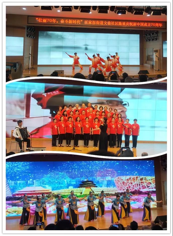七十年来,中国共产党团结带领亿万人民创造了新中国波澜壮阔、惊天动地的历史。 七十年后,一个充满希望、充满生机的大国已然屹立于世界的东方。 建国七十周年到来之际,感悟历史,我们倍感珍惜。 ![]() “我和我的祖国,一刻也不能分割,无论我走到哪里,都流出一首赞歌......”,在汪家拐街道文翁社区举办的庆祝中华人民共和国成立70周年“我和我的祖国”系列宣传活动现场,英联中才员工与社区党员群众一起挥舞着国旗,怀着崇高的敬意齐声歌唱,祝福伟大祖国在民族复兴的征程中不断走向新的辉煌。