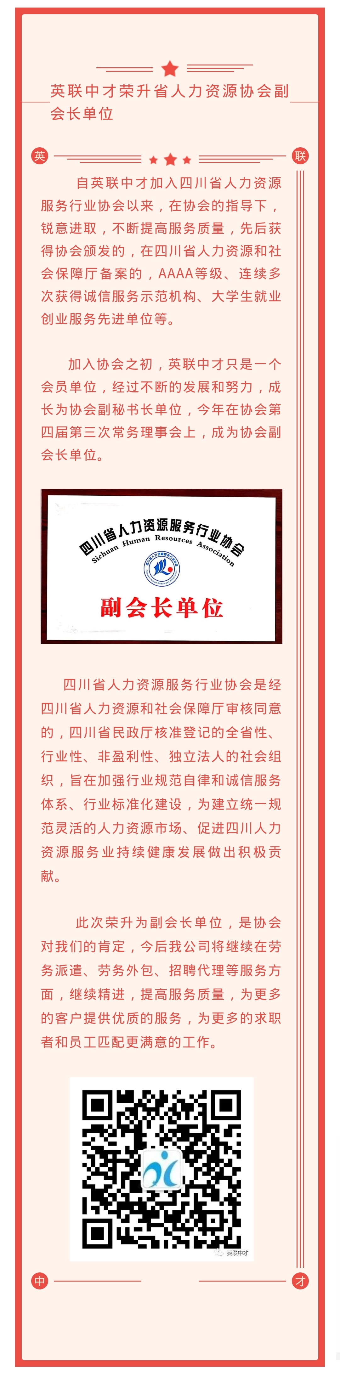 英联中才荣升省人力资源服务行业协会副会长单位