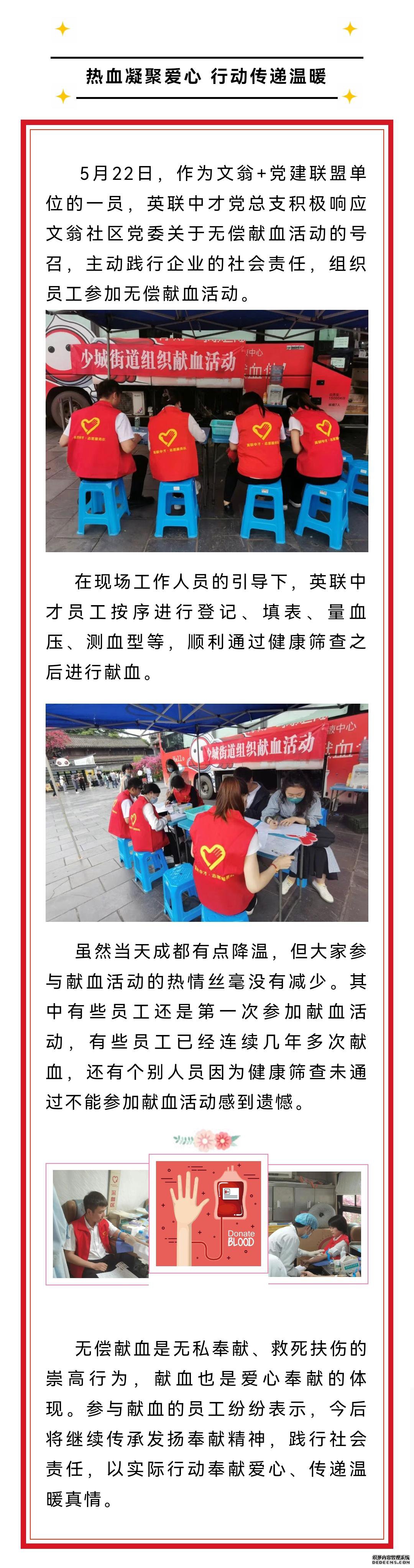 热血凝聚爱心 行动传递温暖--英联中才员工参加无偿献血活动